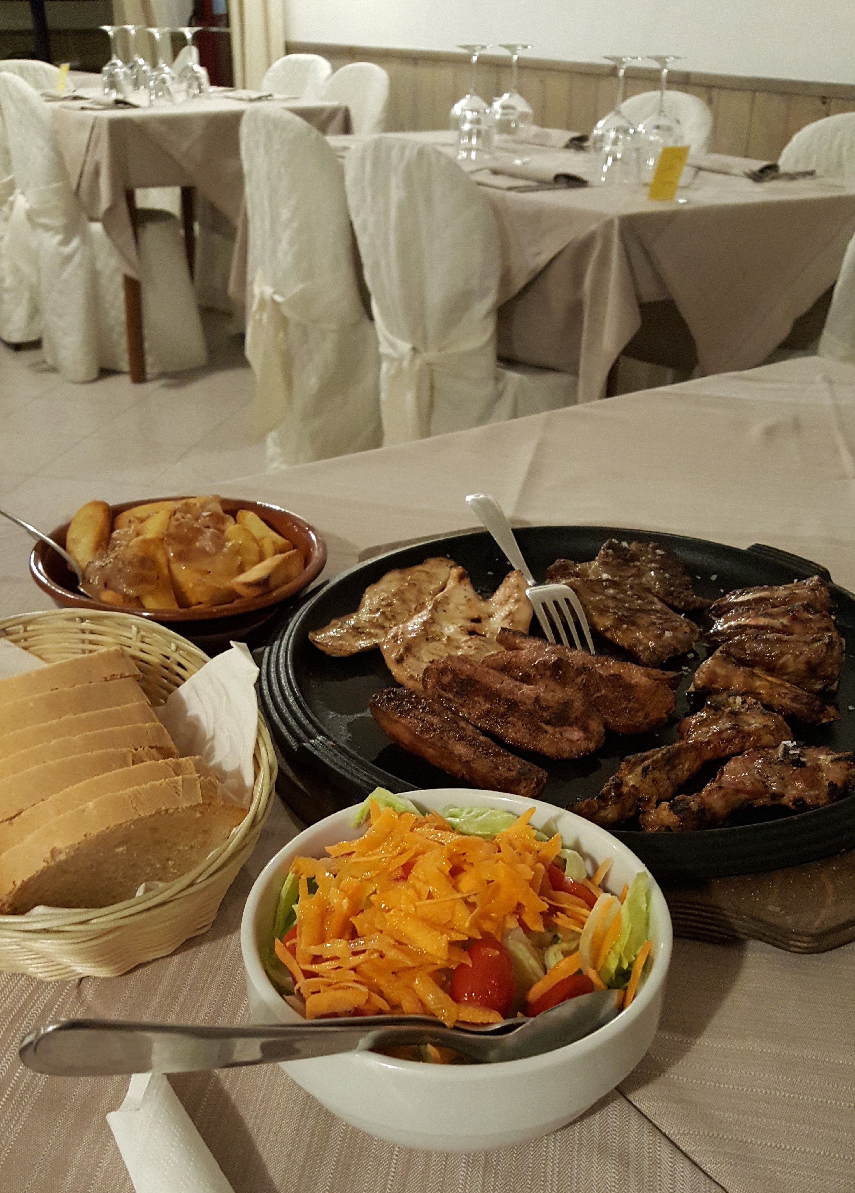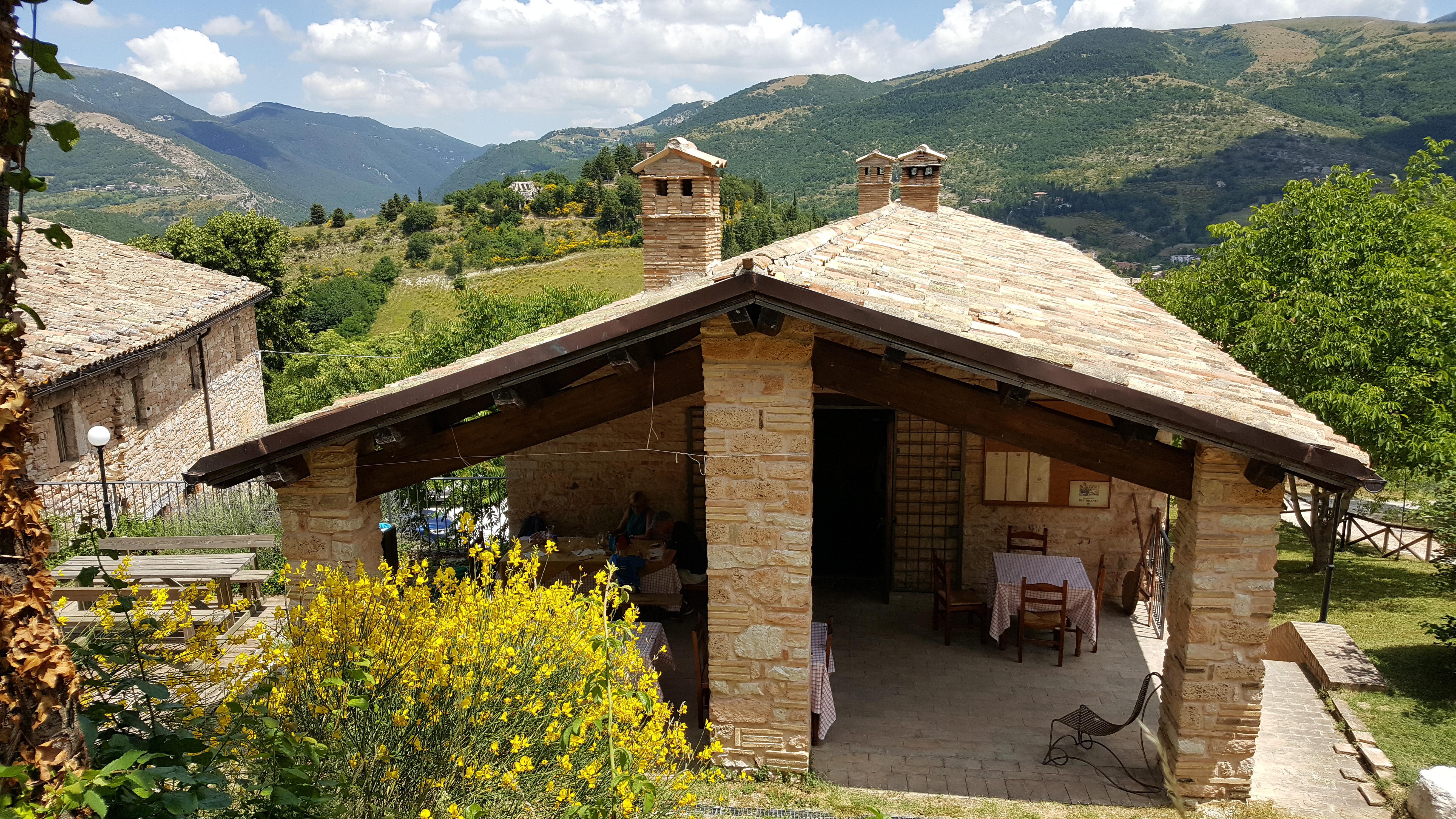 We attempted to eat at La Clarisse which was supposed to be in the medieval part of town but when we went to find it we discovered it had relocated due to earthquake damage. They are now situated within Camping Four Seasons Village Marche. This is one kilometre outside Sarnano along the SP120 and well worth the visit. Do not be put off by first appearances as the garish awning and buzzing insect light on the terrace are stark contrast to the internal décor and the excellent quality food and hospitality.