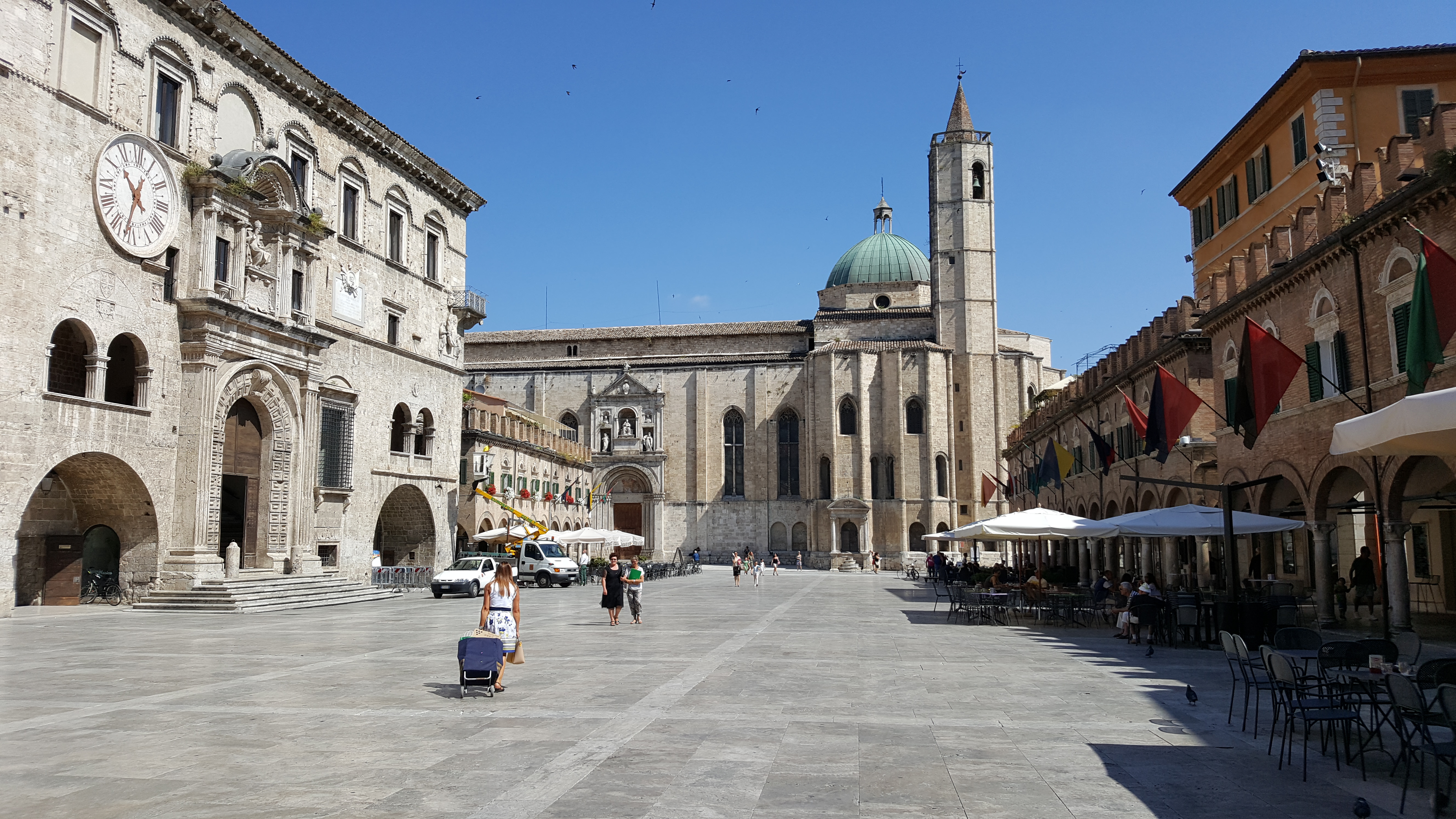 Situated between the mountains and coast we decided to visit Ascoli Piceno on our way to the beach. It is a larger town with a stunning main square, Piazza del Popolo. This is completely traffic free so the children were able to explore the numerous arches. At one end of the piazza sits the Church of San Francesco.