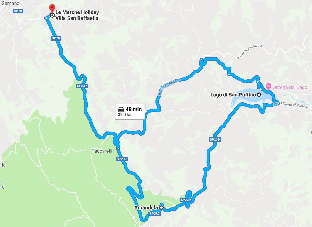 Less than 15 minutes from the villa is the pretty town of Amandola, known for its artisan workshops restoring antique furniture and surrounded by the Sibillini Mountains. The main road through town passes under the medieval stone archway, Porta di san Giacomo. Parking is available on Piazzale Giuseppe Garibaldi, on the left just before you go through the arch, or within the main square,but this gets busy.