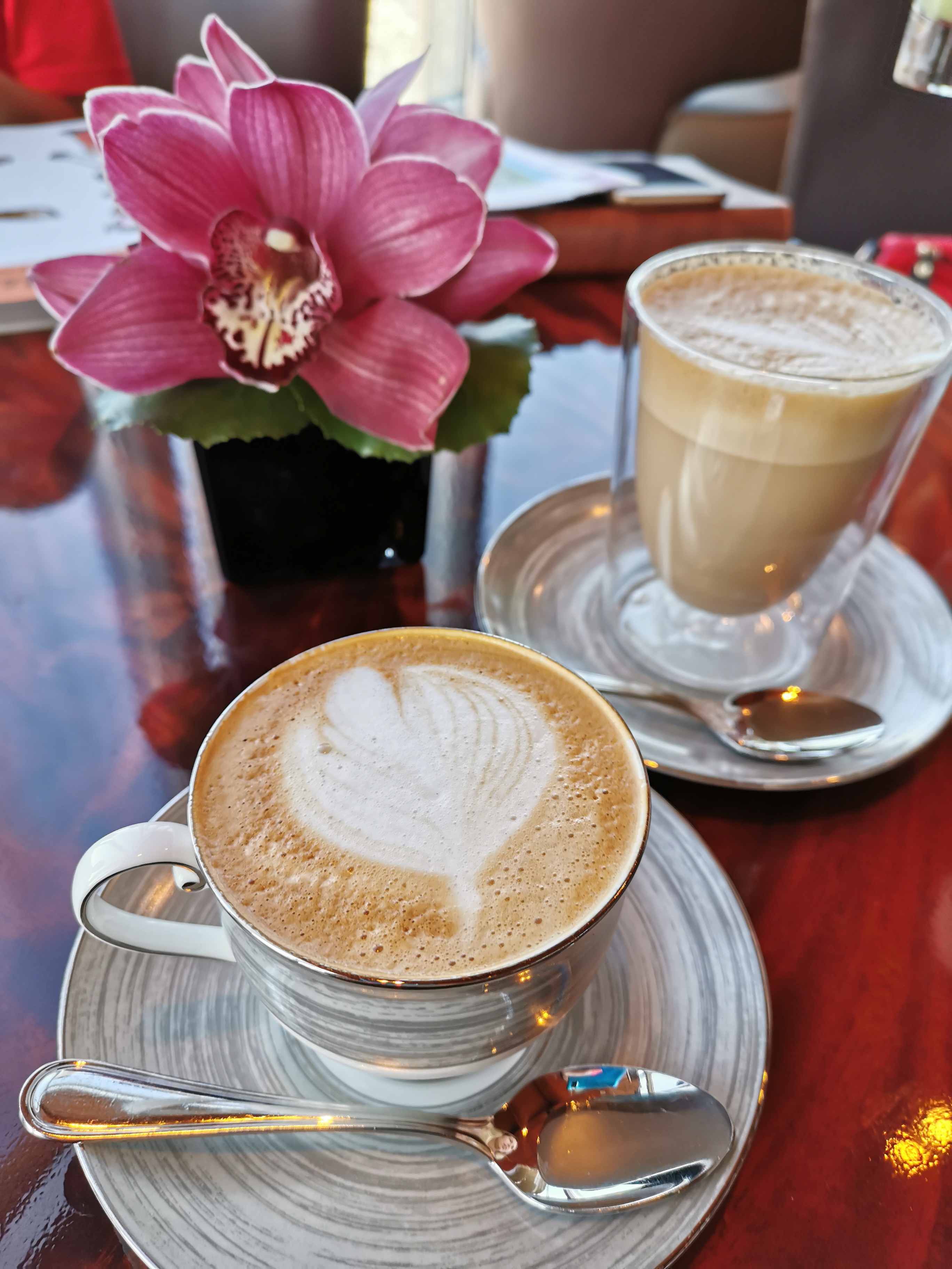 My six year old was desperate to go up the tallest tower in the world. I looked at how much it would cost the four of us to go to ‘At The Top’, on the 124th and 125th floors. This comprises of information on the Burj Khalifa and history of Dubai, floor to ceiling windows providing a 360 degree view of the city, sea and desert, and a souvenir shop. For four of us (my sister joined us) it was going to cost £111. Having been to ‘At The Top’ about five years ago I thought that this was a lot of money when the boys would probably race around the viewing platform and then want to move onto the next activity! I then discovered that At.mosphere, the lounge bar within the Armani Hotel, was located on the 123rd floor and between the hours of 7-9am do ‘Coffee in the Clouds’. This has a minimum spend of 75 AED (£15.55) for all adults.