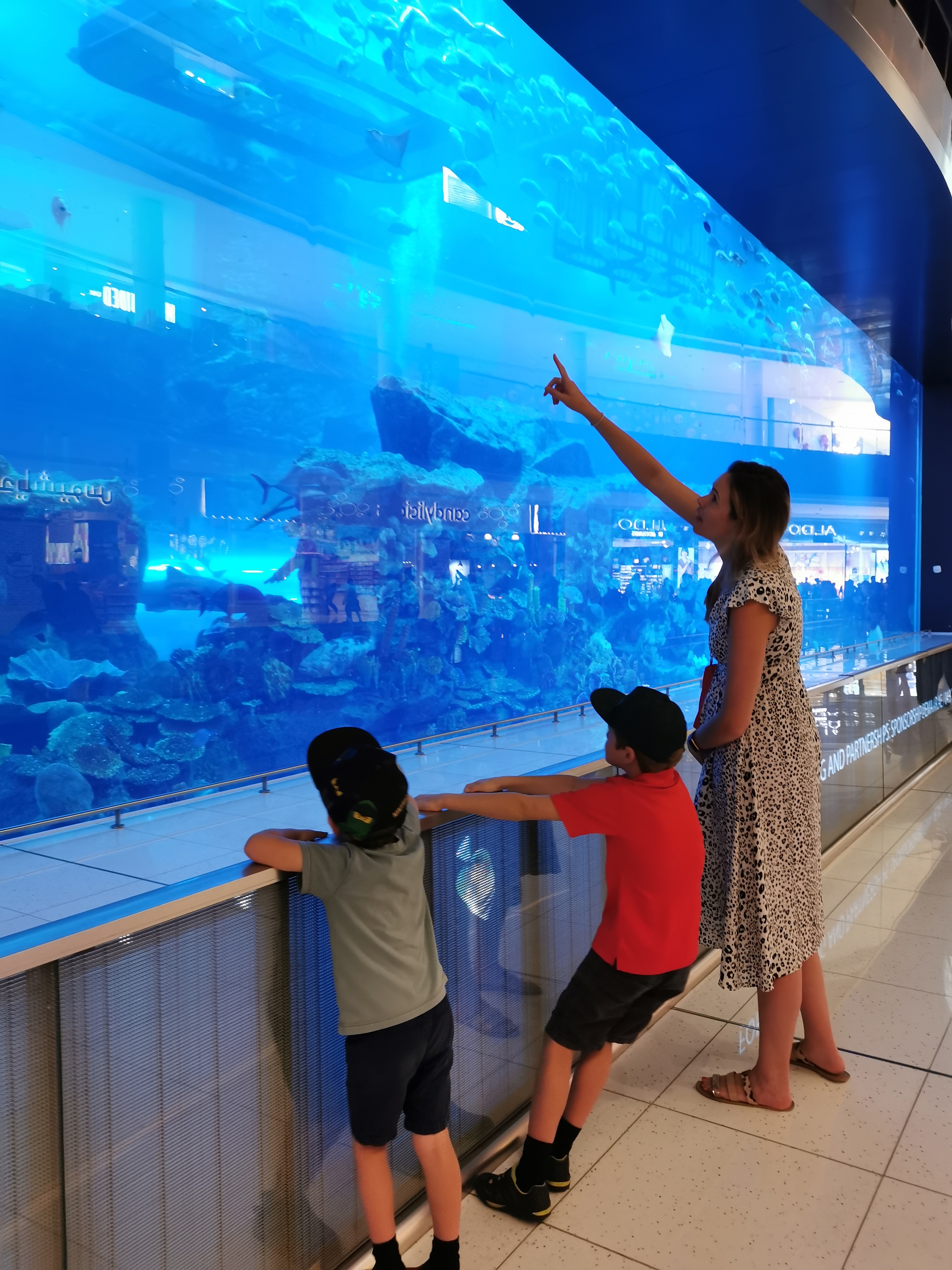 Situated within Dubai Mall is the Aquarium and Underwater Zoo. Even from the outside it is stunning. The giant fish tank which spans three floors can be seen from outside the aquarium for free. The array of fish, sharks, rays and occasional scuba diver is impressive. The boys loved watching it all.