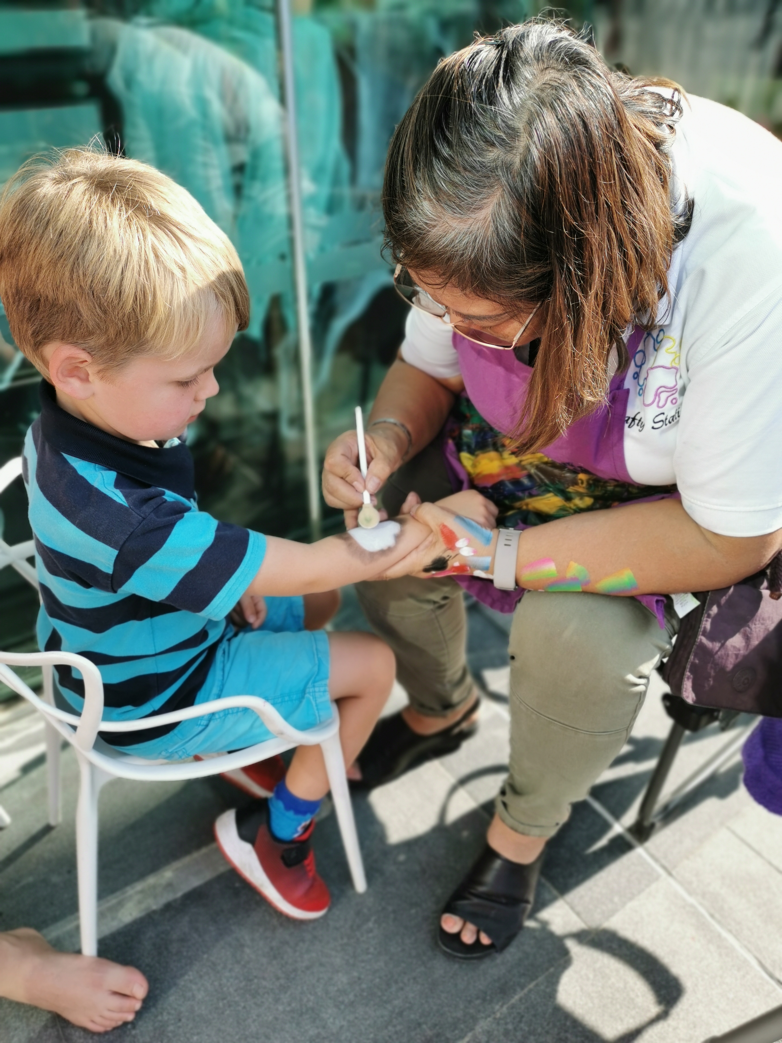 There is a dedicated kids area which has a bouncy castle, face painting, slime making, and a number of other activities to keep them busy. They also have their own buffet which serves up mini burgers, pizza, pasta, a chocolate fountain with fruit and marshmallows, popcorn and ice cream. The boys were in food heaven.