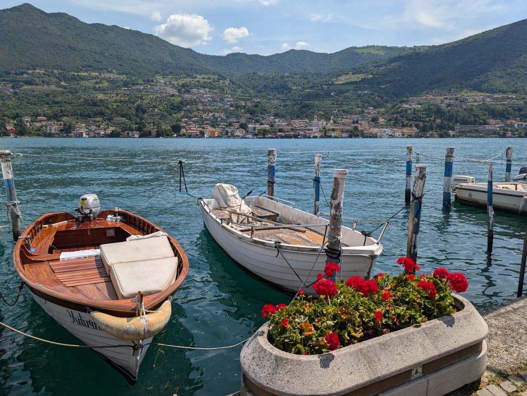 We spent a week in August on Lake Iseo, a picturesque lake located in the Lombardy region of northern Italy. Far less crowded than its more famous neighbours, Lake Como and Lake Garda, it’s the perfect destination for those seeking a more authentic Italian experience. It is the fourth largest lake in Lombardy and fed by the Oglio River, renowned for its stunning natural beauty, surrounded by lush green mountains and beautiful medieval towns.