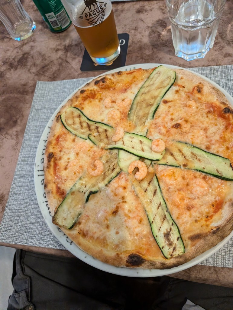 The walk is suitable for all ages and fitness levels, due to its flat terrain. We stopped for a coffee at Stefano’s Cove in Toline before making the return journey to Vello. Strava told us that the walk was in fact 12km return and by this point we were hot and hungry. We stopped for lunch and a swim at the Jazz Café which is directly at the start/finish of the old road in Vello. You are able to bring your own picnic or buy drinks and snacks from the bar/restaurant. Swimming here is either from steps into the lake or down a boat ramp (which gets slippery). It is fine for adults and older children but I wouldn’t recommend young children swim here.