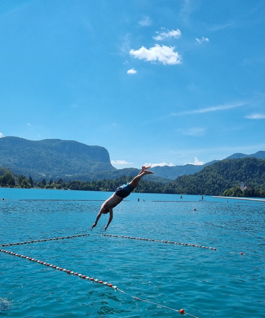 Afternoon: After admiring the views, descend to the boardwalk along the lake and continue to Velika Zaka beach by Camping Bled. This is one of the best swimming spots with a restaurant, ice cream, and a small supermarket. The perfect place to relax after a morning hiking.