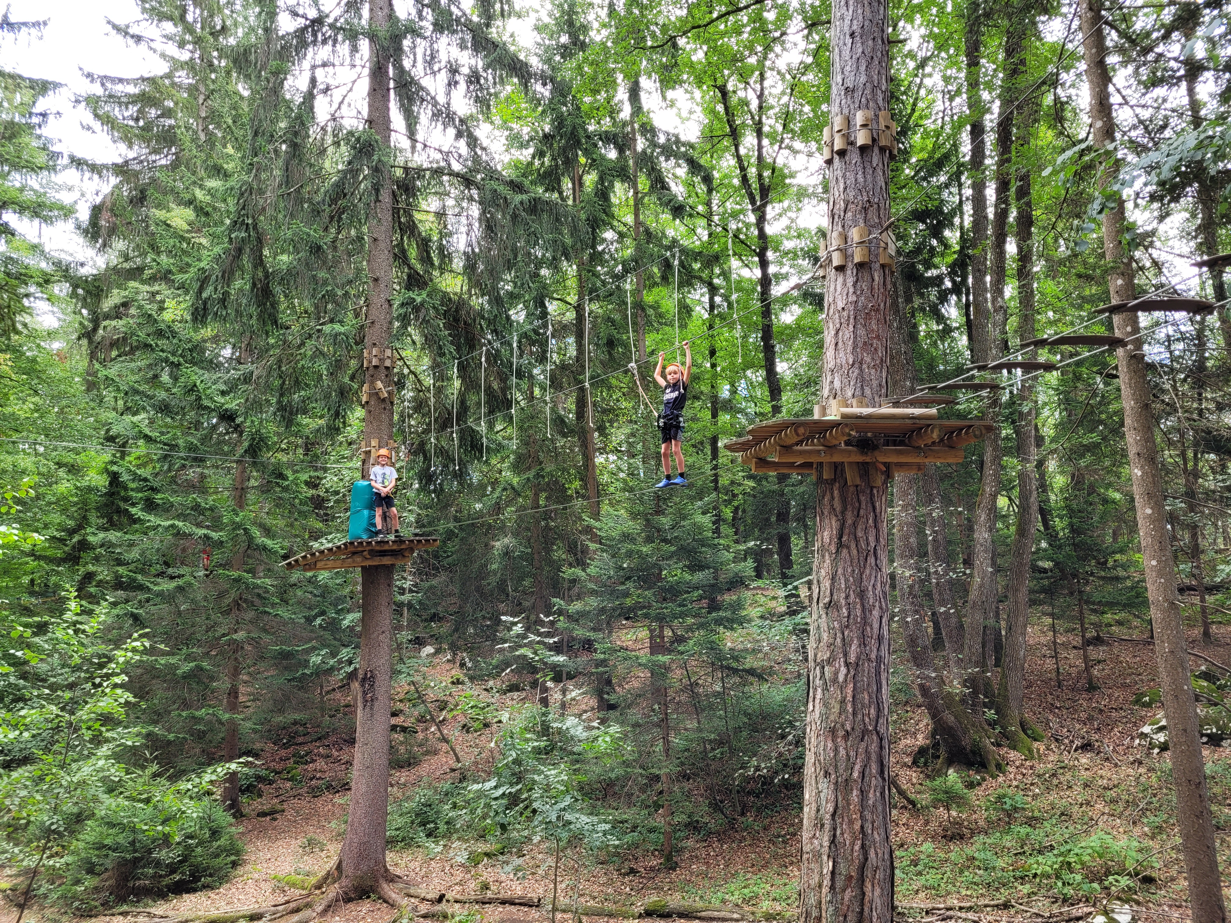 If you require an extra adrenaline rush, visit the high ropes course at Straza Bled. The adventure park offers five different routes suitable for various skill levels. Before starting, you’ll practice on a training course with a guide. Once you’re comfortable, you can explore the courses independently. Our kids particularly loved the long zip lines.