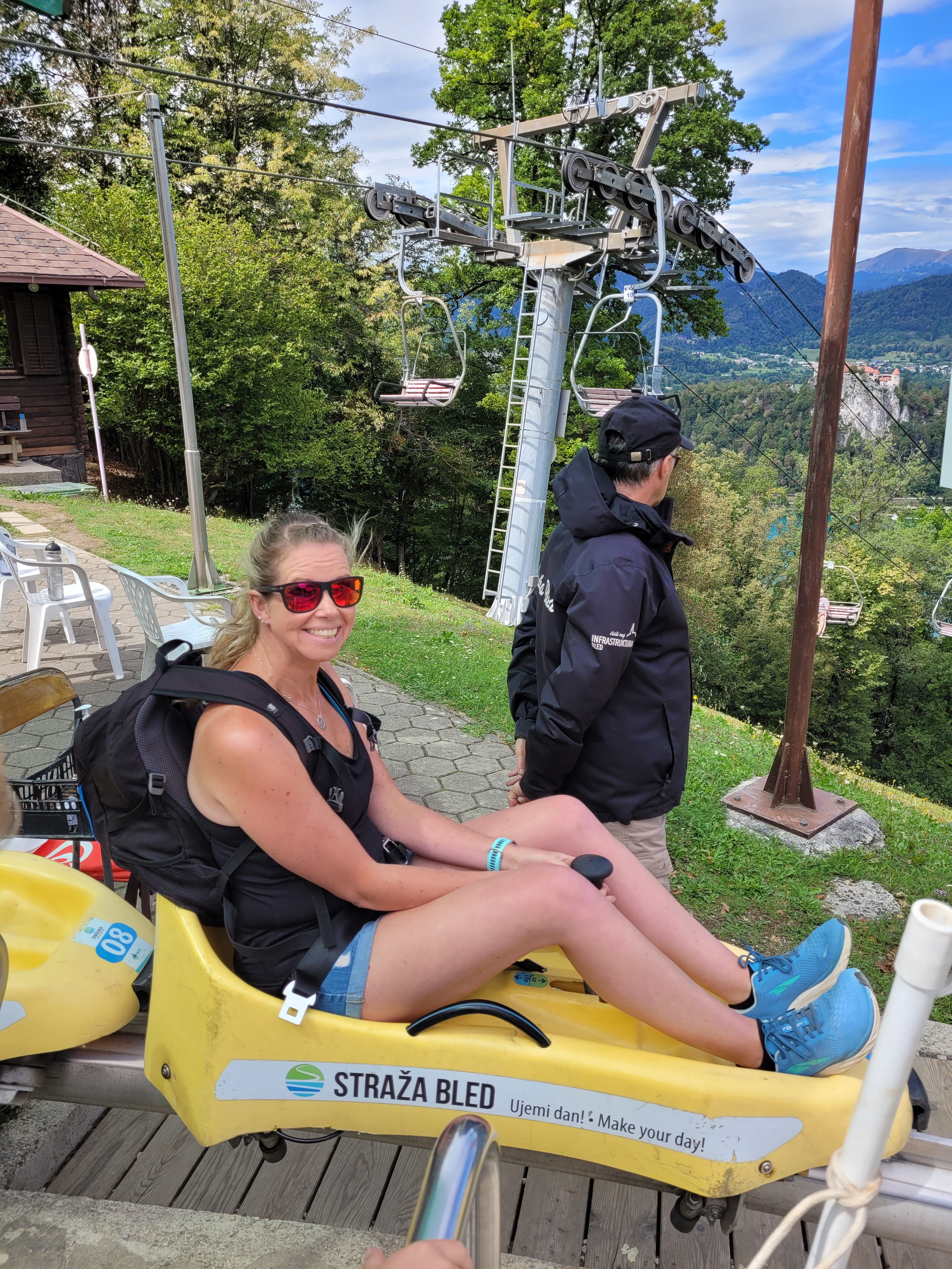 Afternoon: Head to Straza Bled, a 10-minute walk from town. Take the chairlift up for more stunning views across the lake and mountains. From the top of the chairlift, there’s a well maintained trail leading up the hill with a loop at the top. For a fun descent, try the toboggan run. The track runs along the ski slope, following the route of the chairlift. The toboggan runs from spring to autumn, but specific opening hours can vary so it’s best to check the website.