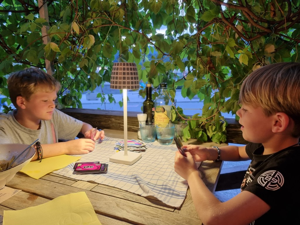 Monika Poklukar is unique spot for a drink and meat/cheese platter, open Friday to Sunday from 12-7 PM. Set slightly away from the lake along Mlinska cesta 28, the bar is known for its delicious home-brewed beer, cider, and wine. Monika runs it with her mother and daughter. They are very welcoming, giving our kids garden games to play with.